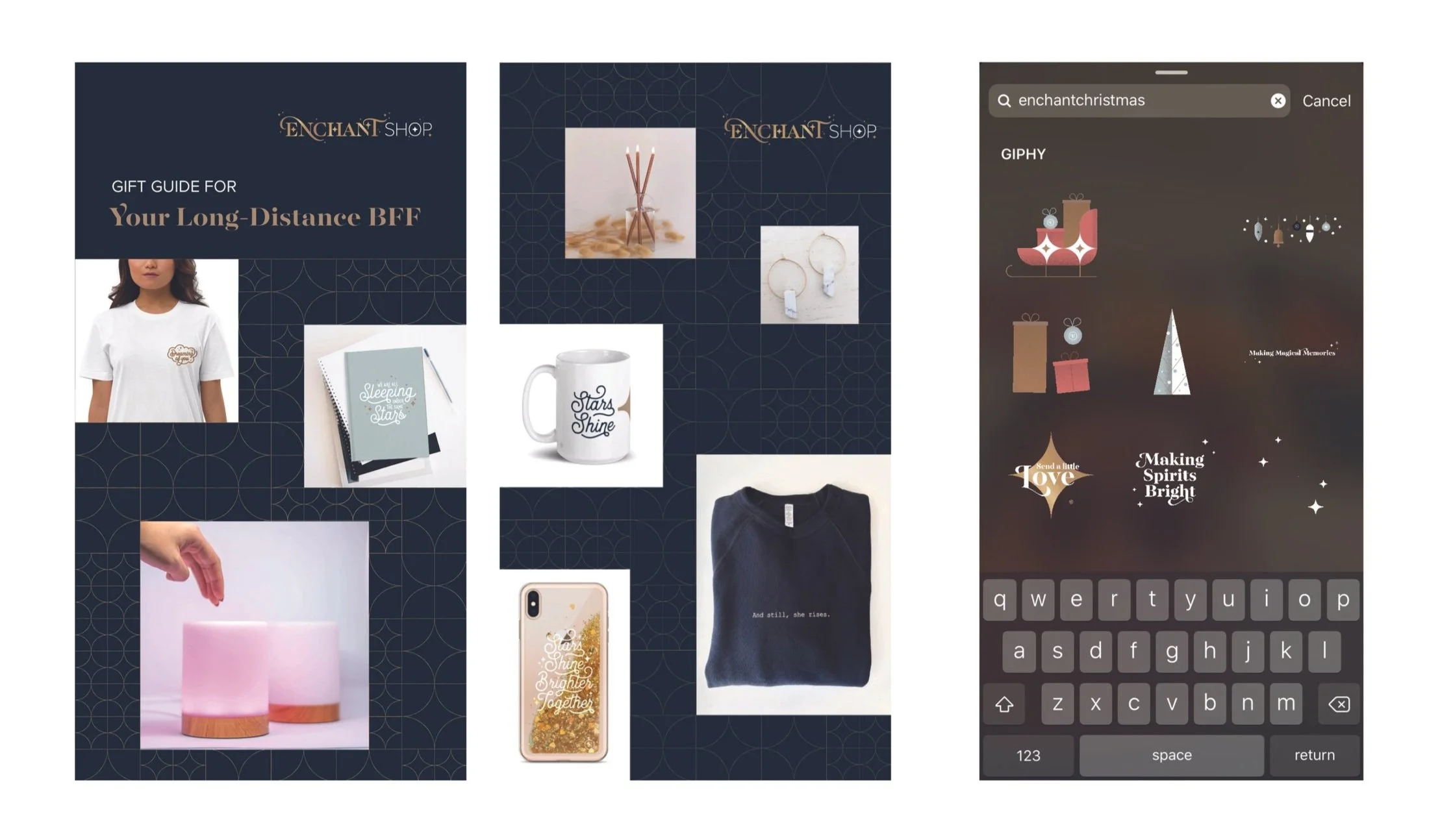 Social media posts and email marketing to promote Enchant Shop