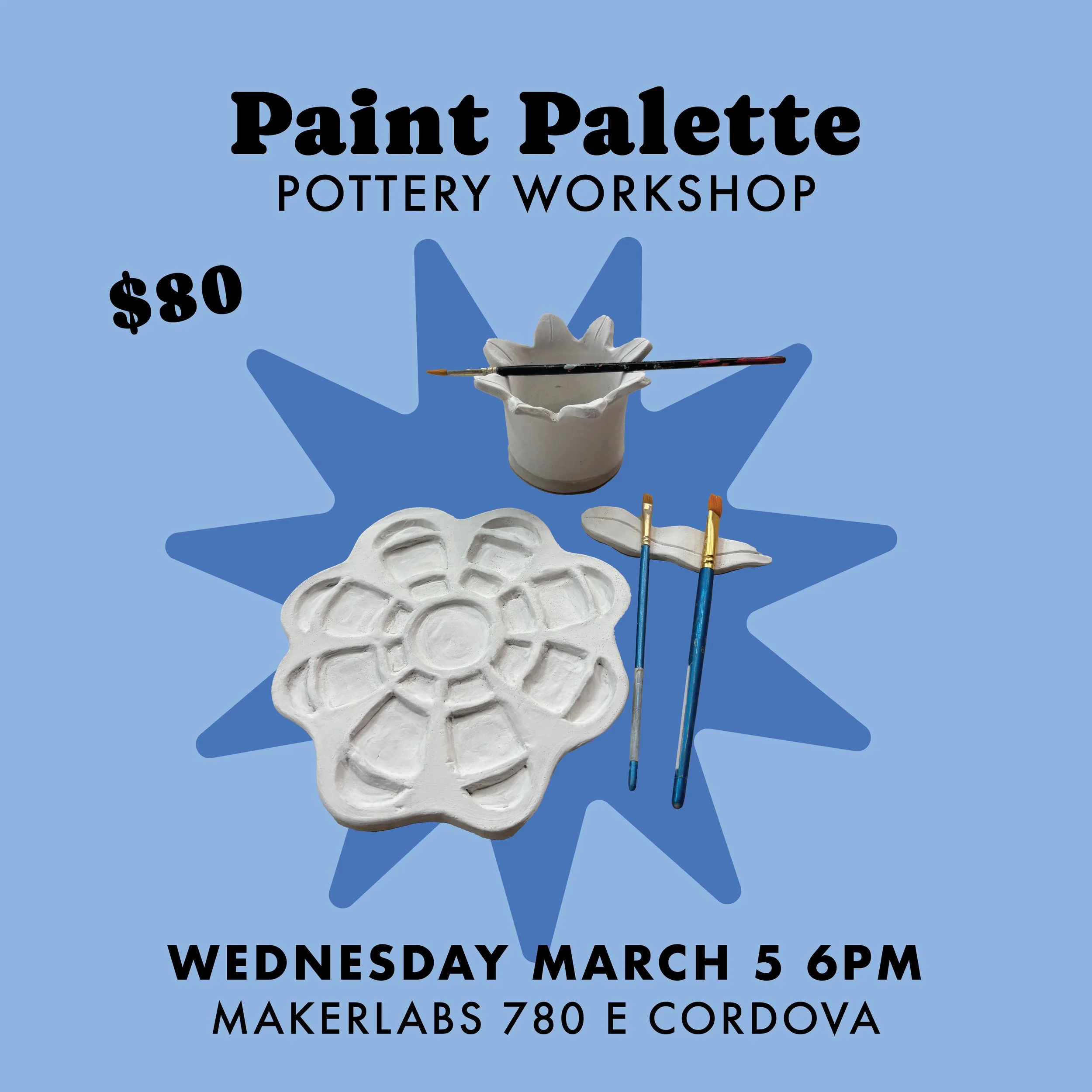 Through handbuilding you will build and sculpt your own paint palette, water cup and brush holder. (Supplies Included, Pieces will be fired after the class)