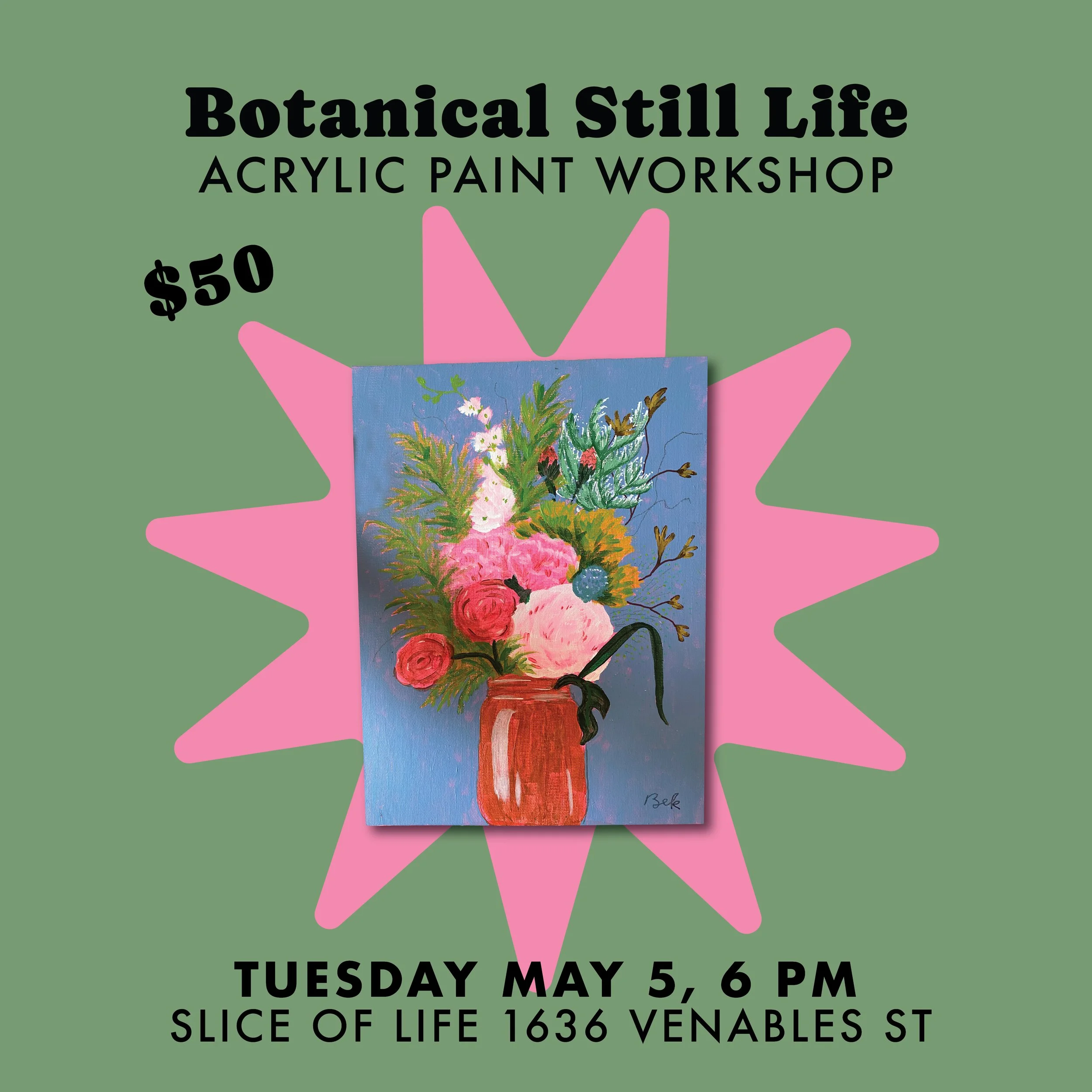 Learn to acrylic paint. In this class we will be painting a bouquet from life. Follow along and learn about underpainting, colour theory and composition. Leave with your own masterpiece.Materials included.